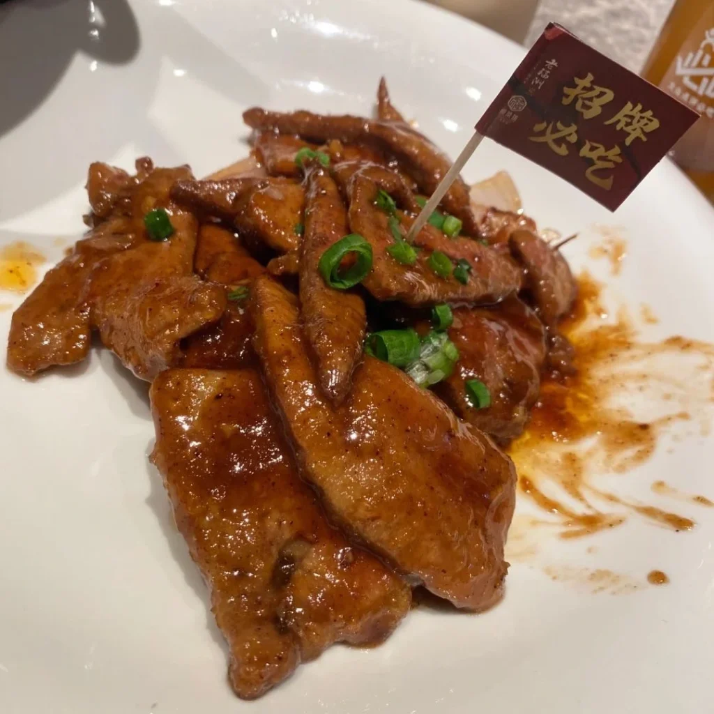Thinly sliced pork liver, quickly stir-fried to retain tenderness and rich, savory flavor.